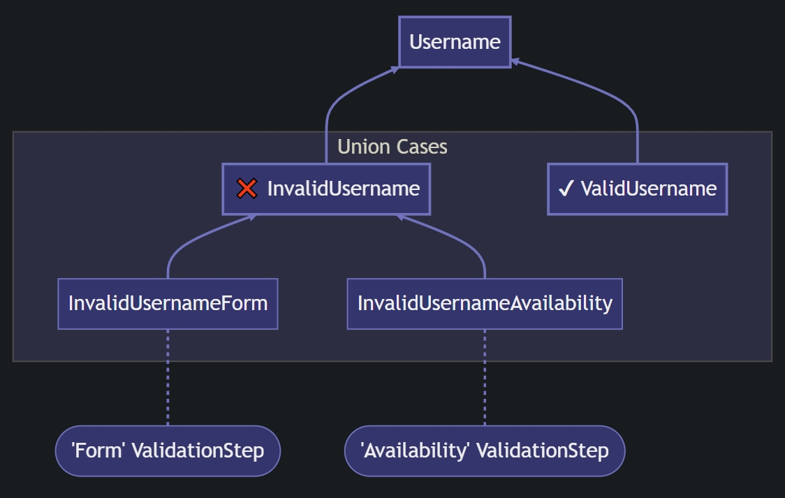 InvalidUsernameAvailabilityunion-case, and holds the valueFailure.→ All Validation steps passed : This ValueObject is valid, and becomes an instance of the