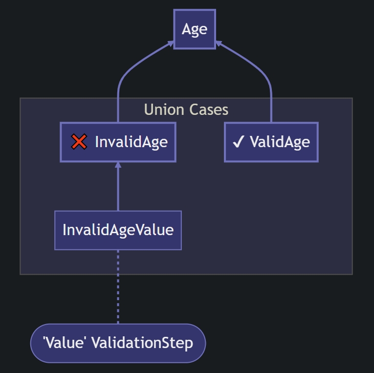 InvalidAgeValueunion-case, and holds that ValueFailure.→ All Validation steps passed : This ValueObject is valid, and becomes an instance of the